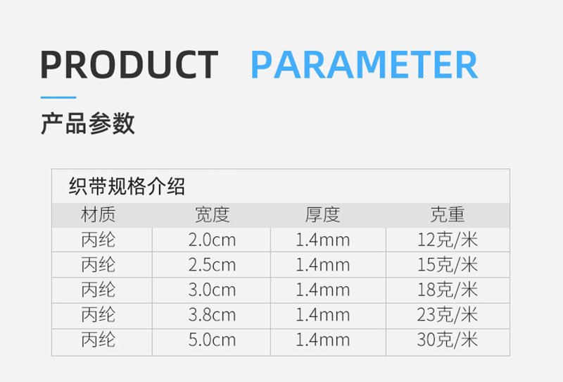 2CM2.5CM3.8CM5CM美國紋丙綸密文帶子,小波浪細(xì)坑紋織帶,丙綸材質(zhì)韌性足加厚耐用,編織緊密,質(zhì)地細(xì)膩平滑抗皺,用于各種箱包服裝等。