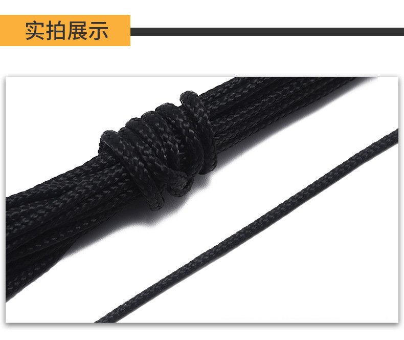 滌綸晾衣繩捆綁繩,耐磨戶外耐曬拉繩尼龍繩子,帳篷編織細(xì)繩旗桿繩。滌綸繩 材質(zhì):滌綸 直徑:2-10mm 拉力強(qiáng)度:100-2000kg 適用范圍:旗桿繩,晾衣繩,帳篷繩,捆綁繩。 緊密編織,紋路清晰,繩索防滑,手感舒適,拉力大耐風(fēng)化壽命長(zhǎng)